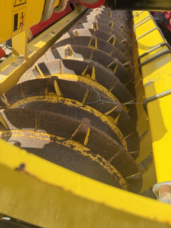 Semoir à disques (barre de semis), 40 descentes, 12,5cm, disques peu usés, herse flexidoigts, 1 tete distri, tuyaux bon etat, millet et sarrazin, reglage pression manuel, ligne semi hydrau, 2 de( ligne semis hydrau (semis volee), Jalonnage